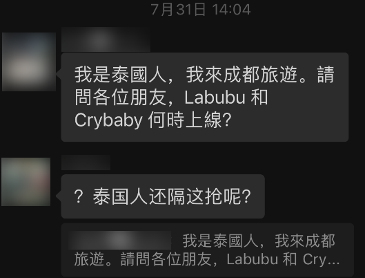 在这段本事的泰国东说念主眼里,中国东说念主 = Labubu 。