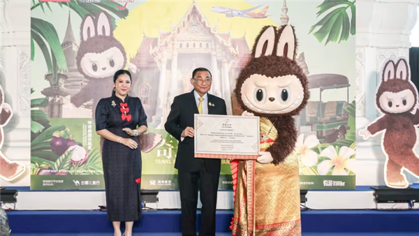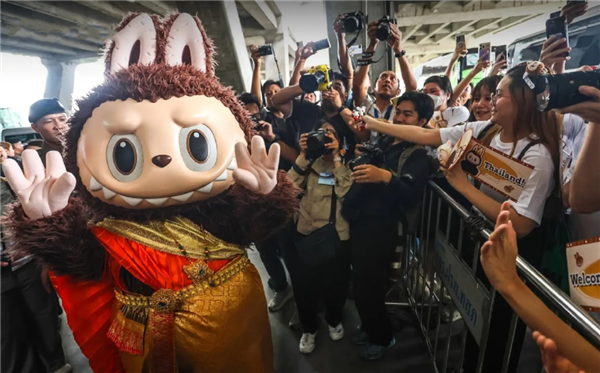 7 月份时候,泰国旅游局还露面请了这个小怪兽来当了个 “ 神奇泰国体验官 ” 。王室、明星和官方的三重加捏下,才使得 Labubu 运行破圈泰国爆火。