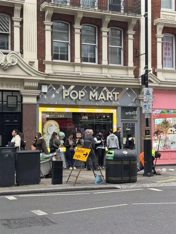 在英国的黎明,没开门的泡泡玛特门外,老外早早就排起了恭候的长队。