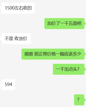 本色上, 67 从二级市集收到这批货的时候,价钱就仍是翻了两倍了。原价 594 一箱的货,他花 1500 的价钱收来的。