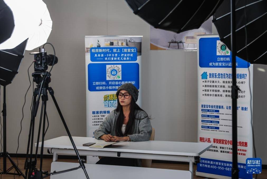 12月18日,在嘉兴电子商务产业园南湖园区各人管事中心的直播间内,一家电商公司责任主说念主员进行直播。