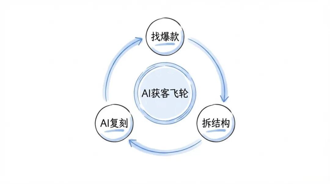 AI获客飞轮就三步:找爆款、拆结构、AI复刻。