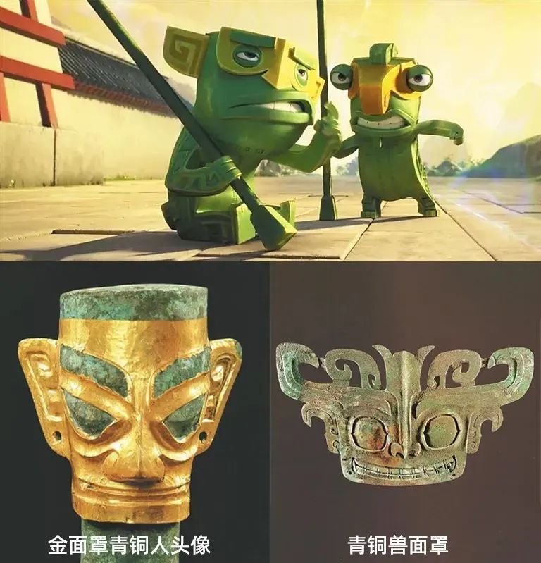我就告诉她们,结界兽其实有原型的,它的原型即是中国邃古时间,三星堆黄金面罩青铜东说念主。鼻子处的鸟喙纹饰,体现的是古蜀国的鸟文化。