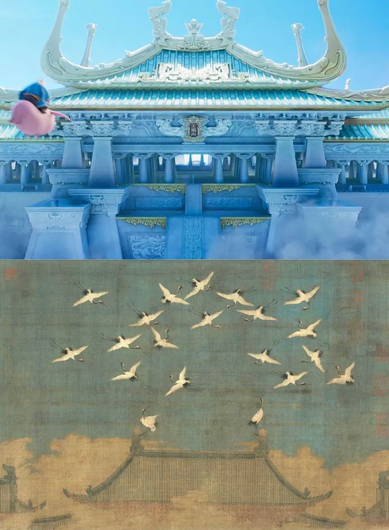 当太乙真东说念主带着哪吒去玉虚宫时,屋顶仙鹤飘动,仙气飘飘,这其实即是曩昔宋徽宗所绘的名画《瑞鹤图》,标志天降吉祥,败国丧家。