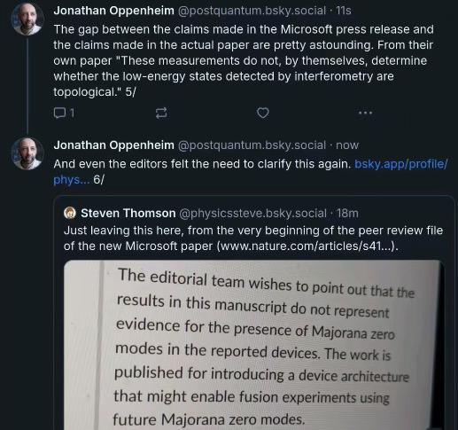 但仔细注目论文细节,这场狂欢可能掺杂着泡沫。微软在《当然》发表的论文承认,履行中不雅测到的双模随即电报信号(RTS)虽顺应马约拉纳零能模预期特征,但无法排斥闲居安德烈夫管制态的可能性。审稿东谈主更直白指出:“本文效果不代表开荒中存在马约拉纳零模的笔据”。中科大团队对此评价提纲振领——这就好比看到东谈主影就说是天神,其实连翅膀齐没拍到。